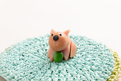 頭頂部にみみを挟むための5mm程の切込みを入れ、みみを挟みます。