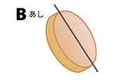 B(あと脚)を斜め半分に切り、A(胴体)の両端にパスタでとめます。