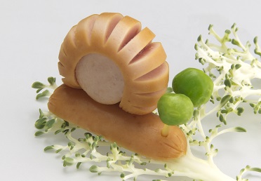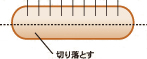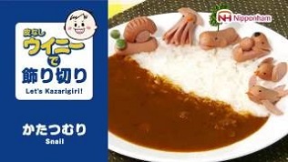 加熱したウインナーに図のように切込みを入れ、かたつむりの殻を作ります。