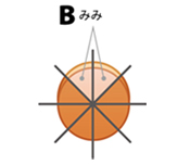 B(みみ)を1/8に切ってみみを作ります。