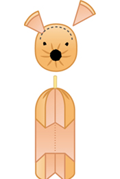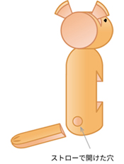背面にしっぽを差し込むための穴をストローを使って開け、D(しっぽ)を差し込みます。