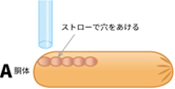 Aにストローで5個 穴をあけます。