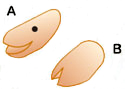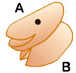 Bの先端にも、Vの字で切り込みAにゴマを差し込み目を左右に付ける。