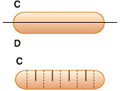 Aの部分にジャバラ切りしたCを巻き付けパスタで左右をとめ、Aの先端に3mm幅に切り込みを入れる。