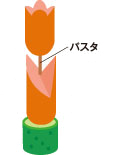 パスタで花の部分と葉の部分を留めてチューリップの完成です。