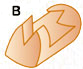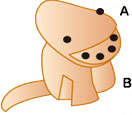 ウインナーの端を斜めに切り落とし頭(A)、胴体(B)のパーツに切り分ける。