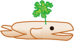 丸く切ったのりで目をつけ、切り込みに尾ひれをはさみます。 パセリを指し、潮を吹かせて完成です。