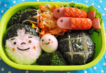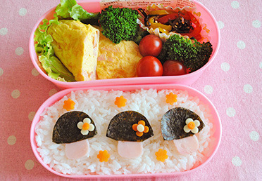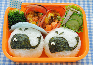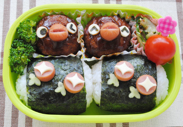 朝顔のおにぎりと肉だんごの小鳥のお弁当