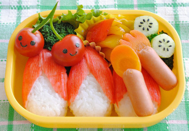 朝顔のおにぎりと肉だんごの小鳥のお弁当