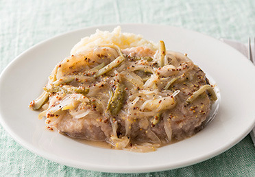 食べ応えのある厚いお肉は、筋切りをしてソテーしましょう。ビネガーとマスタードの爽やかなソースでいただきます。