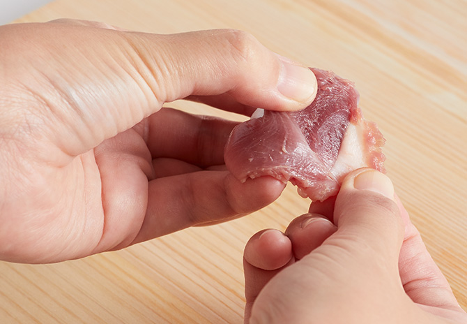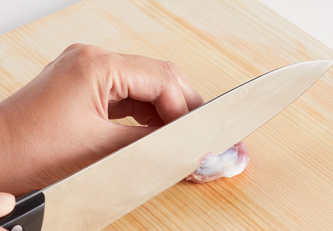 砂肝には青白い銀皮がついているので、これを取りのぞくと食感がよくなります。また砂肝は主に筋肉でできていてかたく、厚みがあるので、切り込みを入れることで火が通りやすくなり、食べやすくなります。