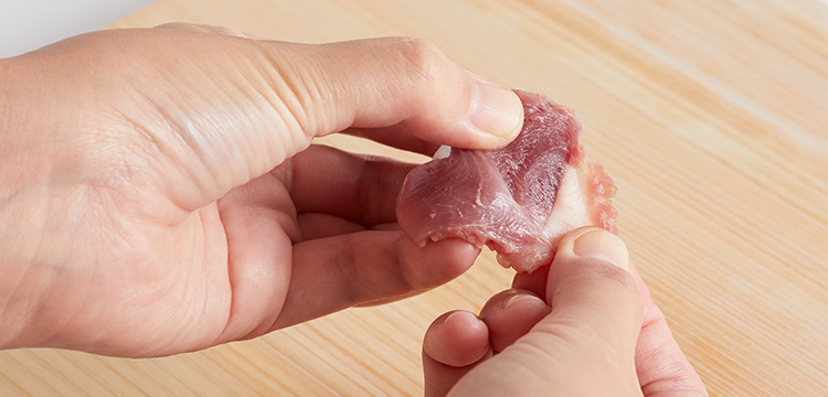 繊維に垂直に切る(牛肉・豚肉)