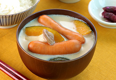 シャウエッセンとかぼちゃの豆乳味噌汁