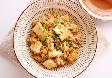 鶏肉×大豆ミートのレンジで厚揚げピリ辛煮
