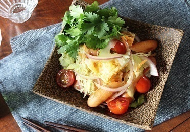 豊潤ウインナーと目玉焼きのタイ風ホットサラダ(ヤムカイダーオ)