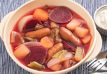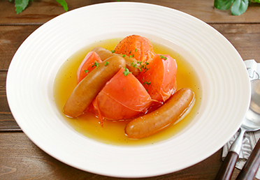 レンジでできる♪シャウエッセンと卵チーズの濃厚トマトスープ