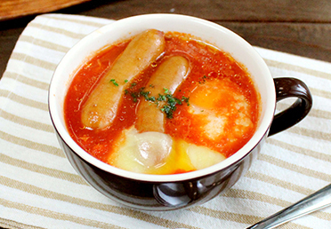 レンジでできる♪シャウエッセンと卵チーズの濃厚トマトスープ