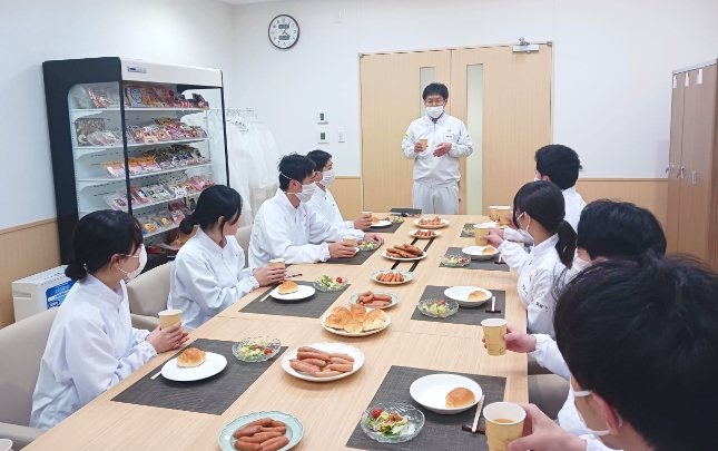 新入社員研修では、ビジネスマナーや日本ハムに関する知識を学ぶだけではなく、グループワークを通して、自分たちで考えながら活動するプログラムを取り入れています。
