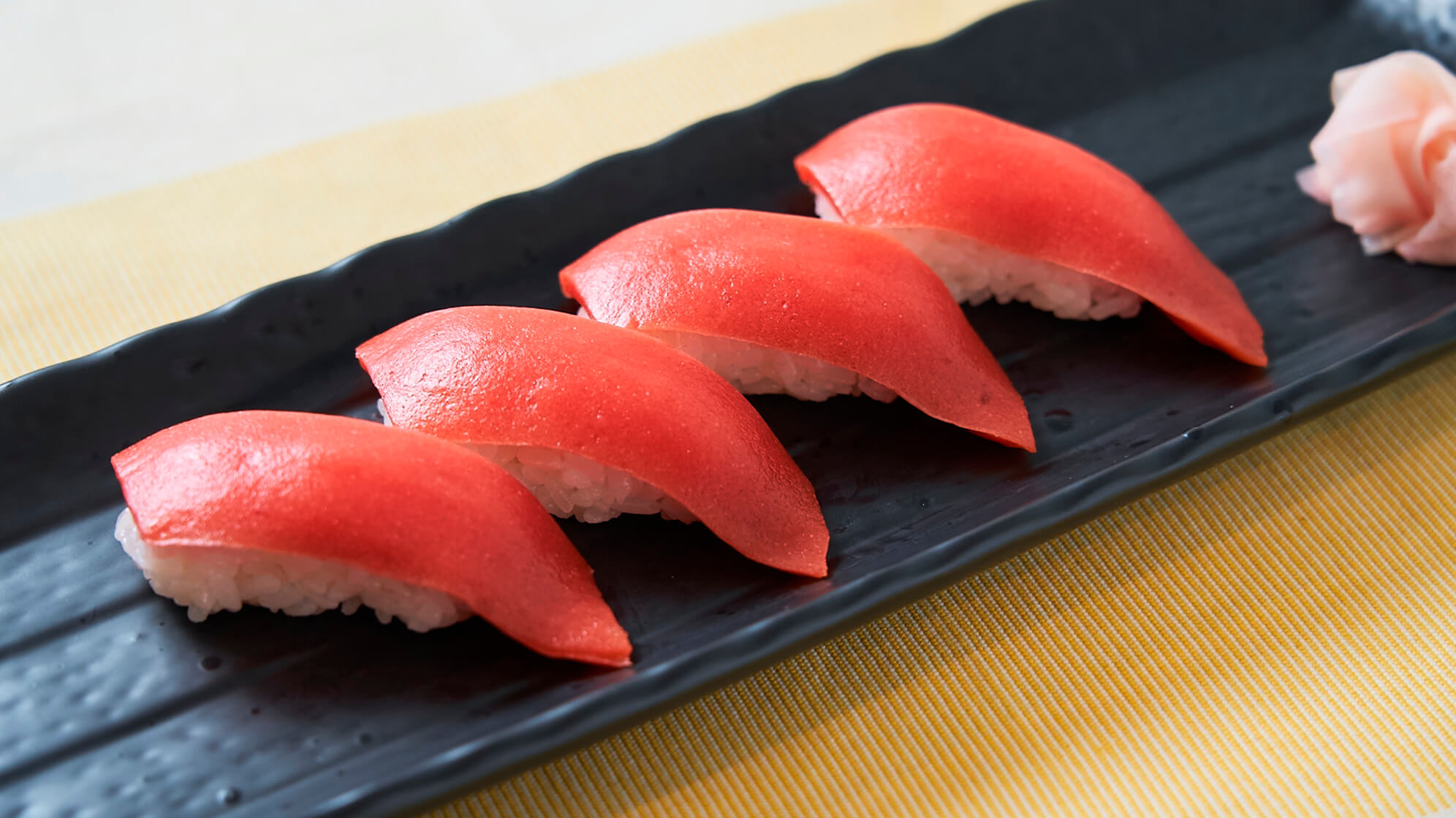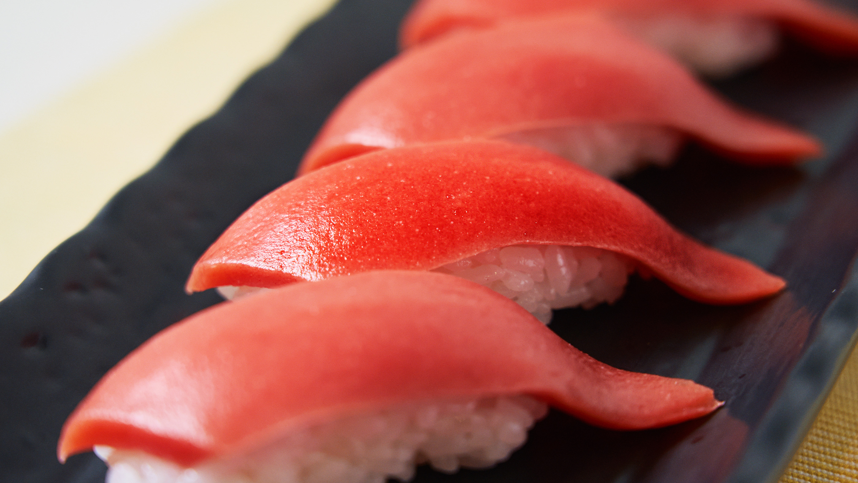 見た目だけではなく、風味や脂の乗り具合まで忠実にまぐろに近づけようと試みた(調理例)