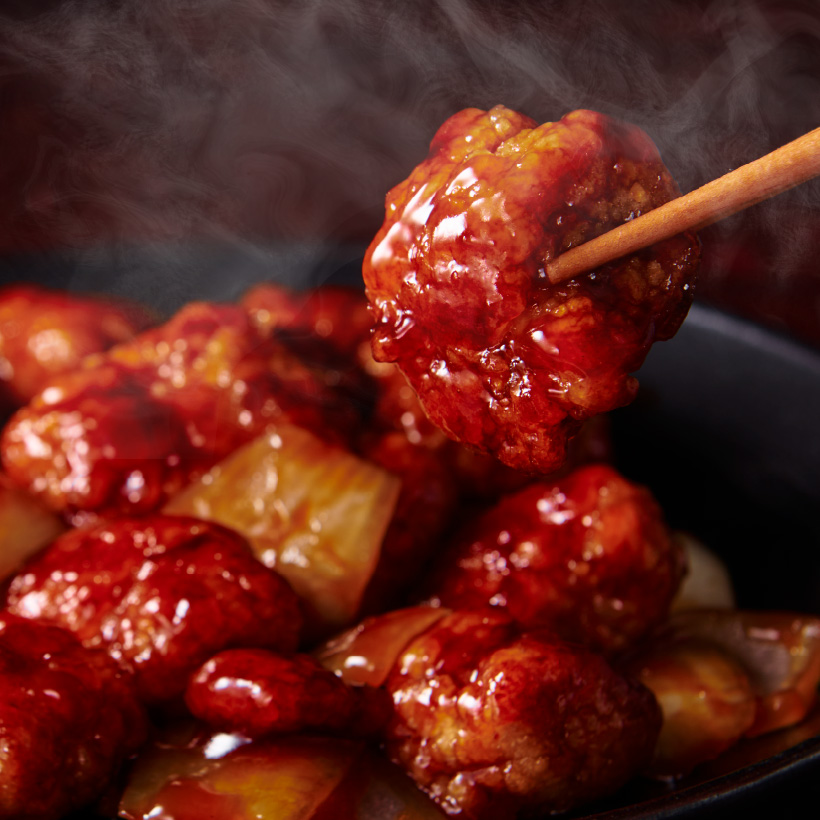 酸味・甘み・とろみを絶妙なバランスで仕上げた特製黒酢ソースは、ご飯がどんどん進む味わいです。