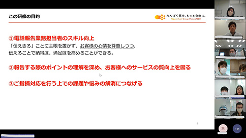 ニッポンハムグループ各社の従業員の応対品質向上を目指して、グループ各社向けに電話応対研修を実施しています。研修では、電話応対の基本的な言葉遣いのみでなく、お客様との信頼関係を深めるためにはどうしたらよいかも学びます。