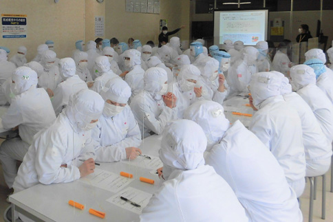 職場の朝礼などで、ニッポンハムグループ従業員が、お客様から寄せられた声(録音)を聴く活動を行っています。お叱りやご不満の声にはいっそう気を引き締めるとともに、お褒めの言葉を大きな励みとして、引き続き業務に取り組んでまいります。