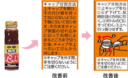 焼肉のたれを使い切って、捨てようと思いましたが、キャップとビンを分けることができません。どうやってするんですか。