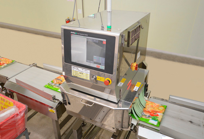 金属検出機、X線異物検出機によるチェックを行います。