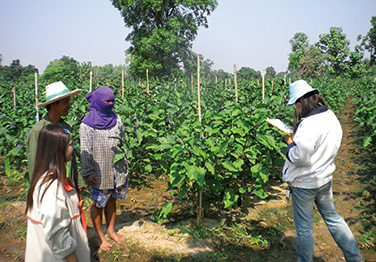 生産地で製品の原材料のチェック