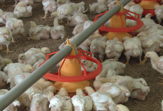 飼育農場では、鶏舎ごとにひな鶏を受け入れ、鶏の出荷までを一斉に行い、鶏舎の洗浄などを行うことで衛生環境を保っています。