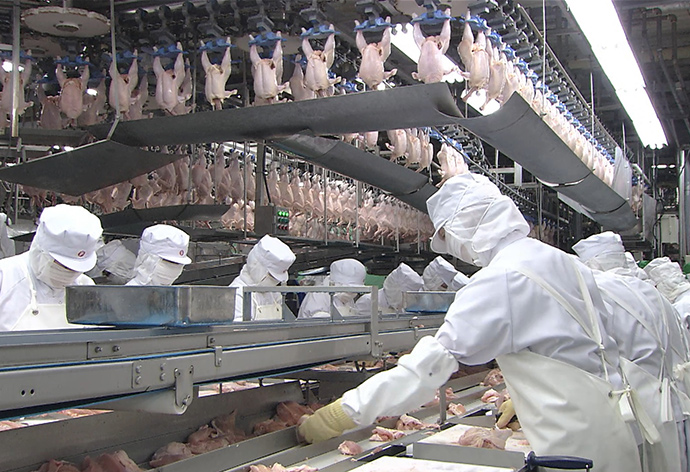 食肉事業本部では、生産、飼育を行った豚や鶏の処理段階において