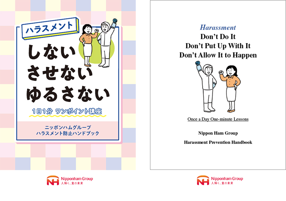 ハラスメント撲滅に向けては、従業員一人ひとりの正しい理解が重要です。国内事業所では「ニッポンハムグループ ハラスメント防止ハンドブック」を共有し、7か国語に翻訳して外国人従業員にも配布しています。