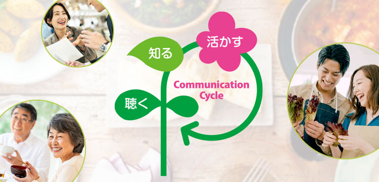 消費者志向経営を推進するため、消費者の声を「聴く」「知る」「活かす」のコミュニケーションサイクルを循環させ、消費者の満足度向上と商品・サービスの改善につなげます。