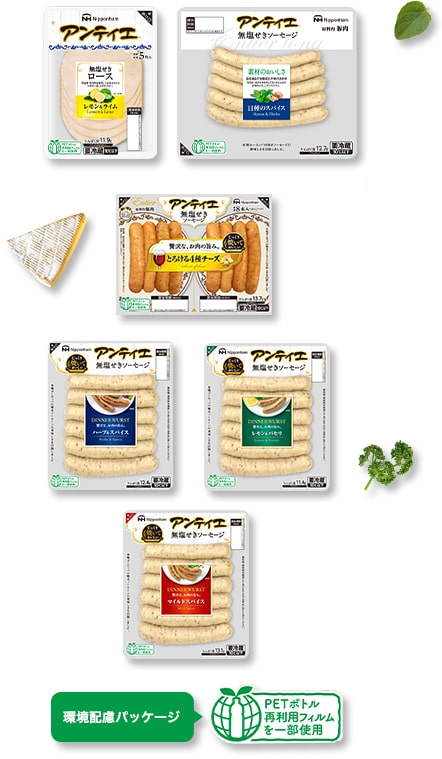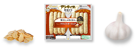 生ソーセージと同じ「無塩せき」にこだわるアンティエは、細菌を抑制する効果のある発色剤を使用しないため、短時間でお肉の旨味を引き出さなければなりません。そこが開発の難しさでした。