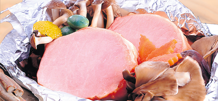 ロースハムときのこのホイル蒸し焼き
