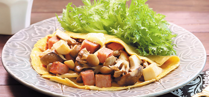 シャウエッセンのお肉で作ったミートローフとたっぷりきのこのゴロゴロオムレツ