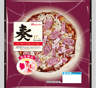 奏(かなで)は17時間以上熟成させた生地を中種に使用し、外はサクッと、中はモチモチの食感が楽しめるピッツァブランドです。昨年3月より販売を開始し、夕食メニューとして好評いただいています。今回、ラインナップの拡充を図るべく、奏シリーズの2品目を発売します。| 商品名 | 奏 ソーセージ&ベーコン |