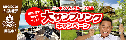 バーベキューやキャンプ場にピッタリのニッポンハムグループ商品を、全国のBBQ場・キャンプ場で無料サンプリング提供致します!