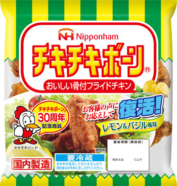 日本ハム株式会社(本社:大阪市北区、社長:末澤壽一)は、チキチキボーン発売30周年記念商品の1つとして5月20日(土)よりチキチキボーン レモン&バジル風味を発売します。