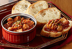 そのままで食べるほか、バケットにのせたり、耐熱皿に移しチーズをのせ加熱して食べるなど、アレンジしてもお楽しみいただけます。| 商品名 | トリッパのトマト煮 ひよこ豆入り |