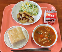 2017年9月 酒田市内にある全小中学校の計34校において、給食メニューに『みんなの食卓® 米粉パン』が採用されました。地産地消の面からも1年に2回、給食に採用されています。