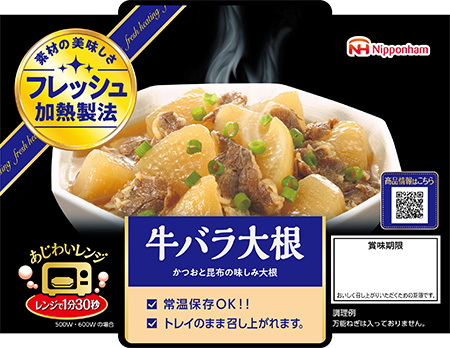 日本ハム株式会社(本社:大阪市北区、社長:畑 佳秀)は、3月10日(水)より「あじわいレンジ 肉じゃが」、「あじわいレンジ すき焼き」、「あじわいレンジ 牛バラ大根」、「あじわいレンジ ビーフシチュー」、「あじわいレンジ ハンバーグステーキ」、「あじわいレンジ バターチキンカレー」の計6品を新発売します。