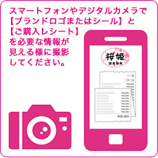●WEB応募:対象商品をご購入のうえ、「ブランドロゴまたはシール」と「ご購入時のレシート」を一緒に撮影してご応募ください。