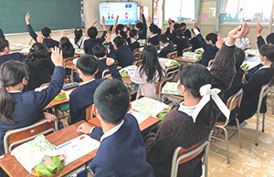 「普段は考えることがない食物アレルギーについて学ぶ機会を持つことができた。クイズ形式を中心とした授業で、子どもたちは興味を持って参加していた。学年に食物アレルギーをもつ児童が何人かいるので、食物アレルギーをもつ友達のことを知る良い機会になった。」という感想をいただきました。
