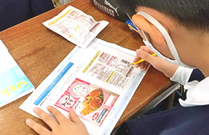 食品表示の見方を学ぶワークでは、実際に食物アレルギー配慮商品と通常商品の表示を見比べながら、食品に含まれるアレルゲンを見つけることにチャレンジ。事前にお渡しした副読本を見返したり、まわりの友だちと協力して回答するなど、積極的に参加してくれました。