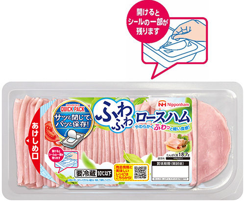 | 特徴 | ・厚さ約0.6mmの超薄切りのロースハムです。 ・サラダのトッピングやサンドイッチの具材に使うことで、ボリューム感のあるメニューに仕上がります。 ・開け閉めできて保存に便利なクイックパック形態です。 |