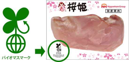 生物由来の資源(バイオマス)を活用し、品質及び安全性が関連する法規、基準、規格等に適合している環境商品の目印です。