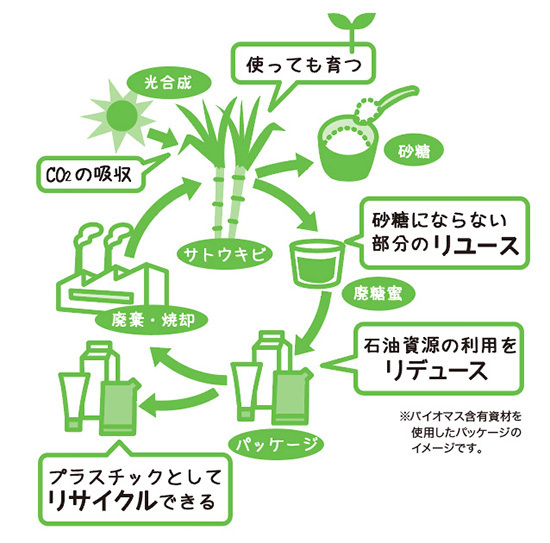 パッケージの一部に植物由来のバイオマスを使用