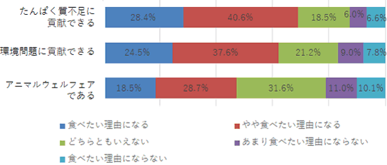 「たんぱく質不足に貢献できる」「環境問題に貢献できる」「アニマルウェルフェアである」