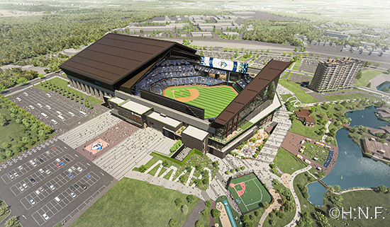 約32ヘクタールという広大な敷地面積に、球場のほか様々な施設を備えたコミュニティスペースです。より多くの人がこの場所に集い、共に夢や理想を実現していく街をつくっていきます。
